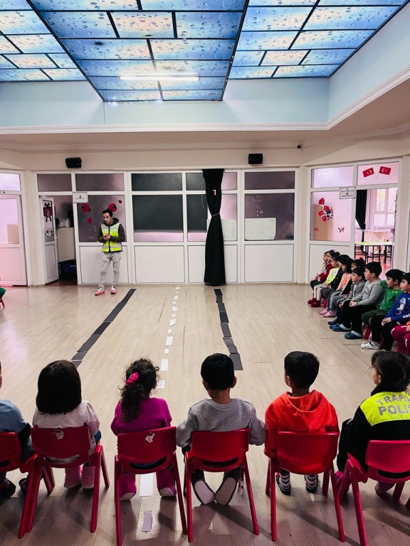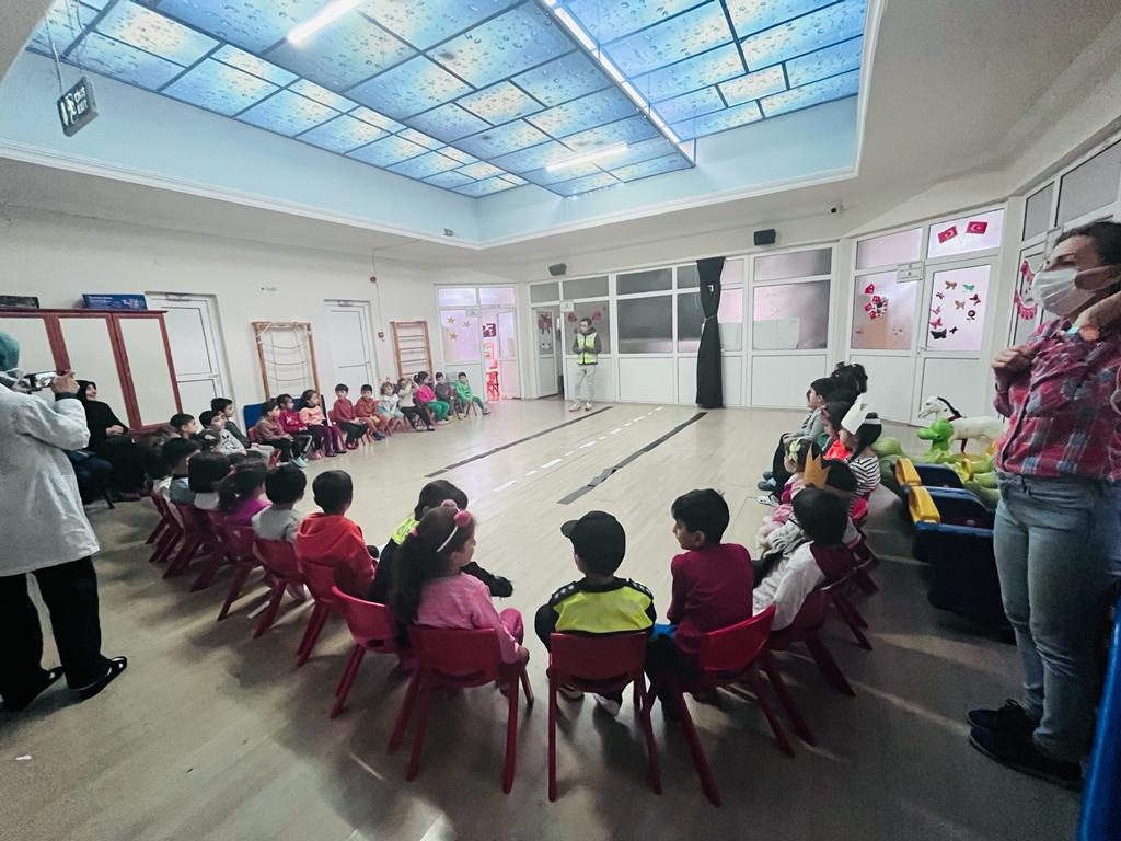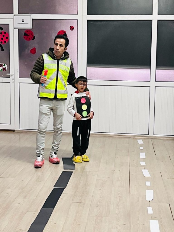 Öğrencilerimize trafik kuralları ve işaretleri hakkında bilgilendirme çalışmaları yapıldı. Trafik polisi olan velimiz katılım sağlayarak öğrencilerimize gerekli bilgilendirmeleri uygulamalı olarak öğretti. kendisine bu güzel çalışma için teşekkür ederiz.